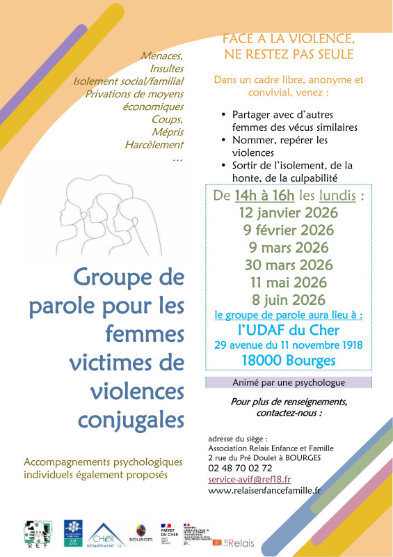Le Centre d’information sur les droits des femmes et des familles CIDFF du Cher - 6B, rue du Pré-Doulet, Tél. 02 48 24 00 19